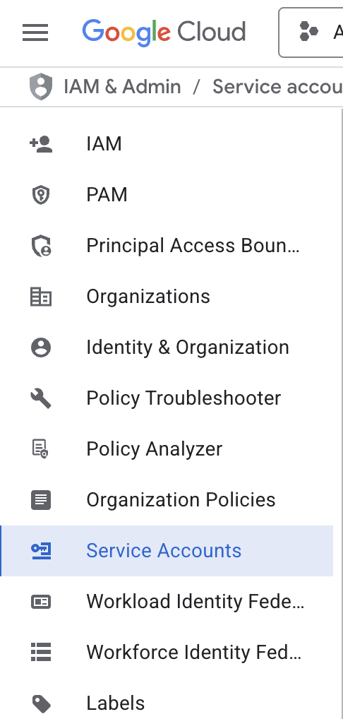 Go to the IAM & Admin section of Google Cloud